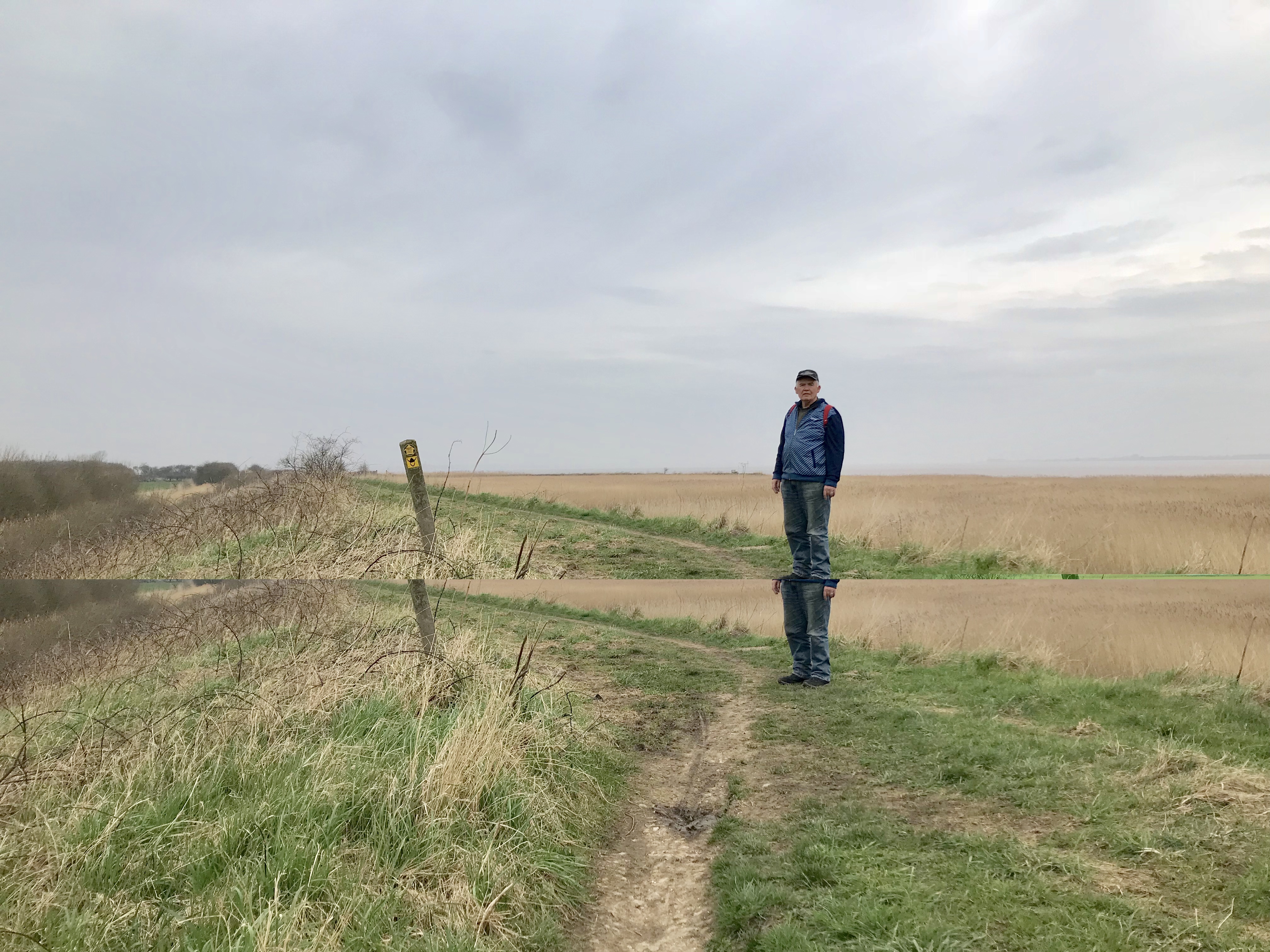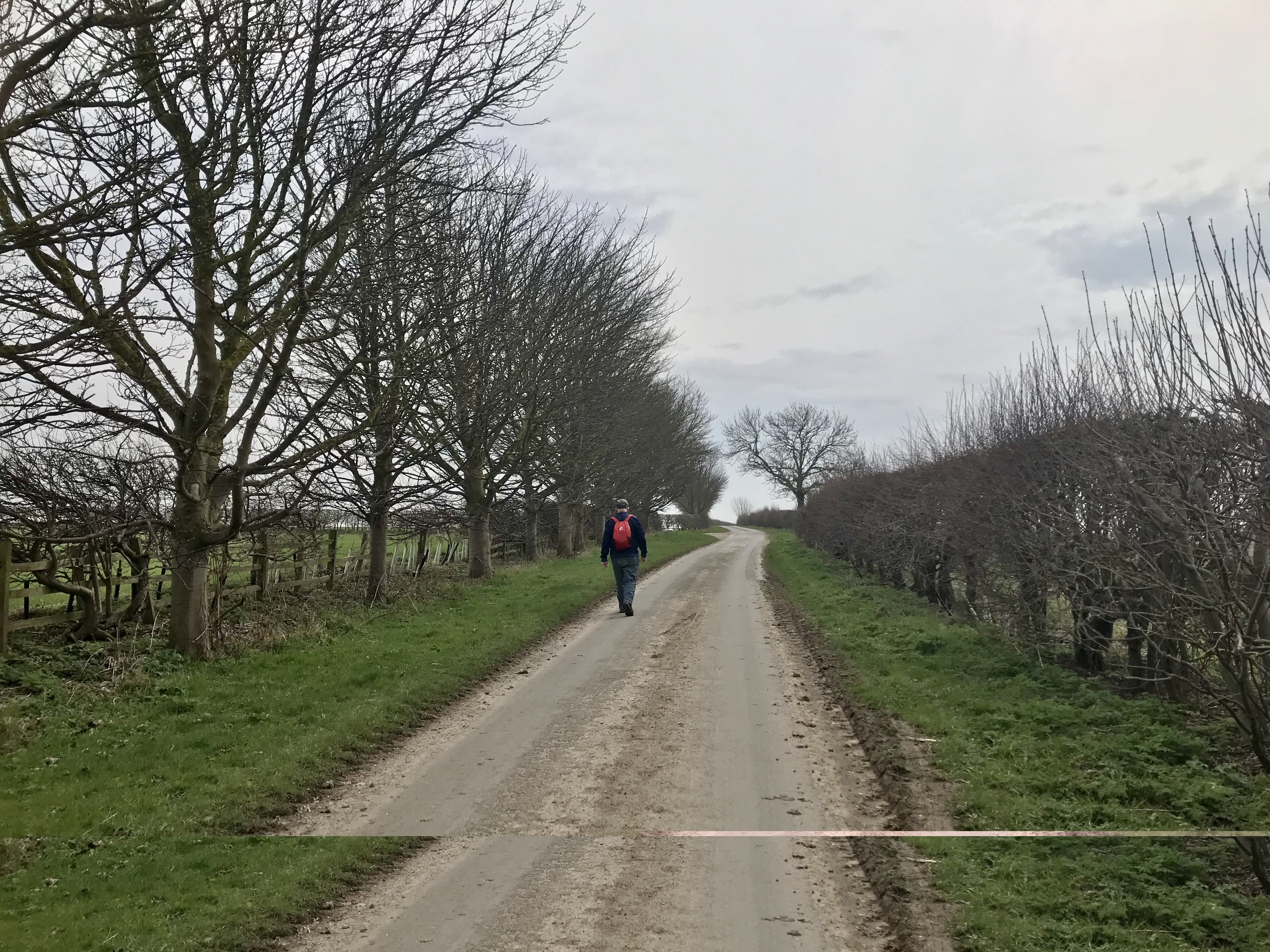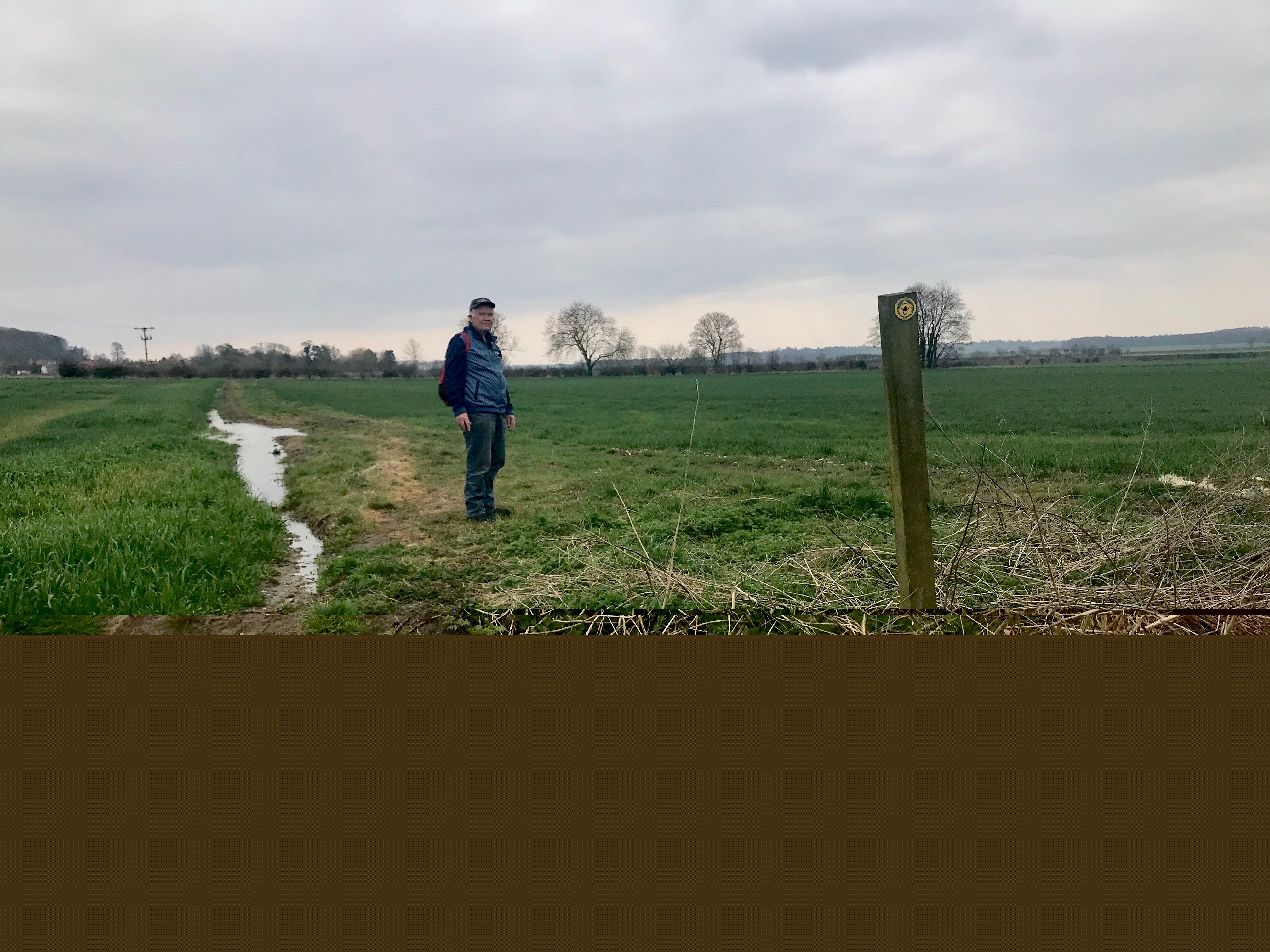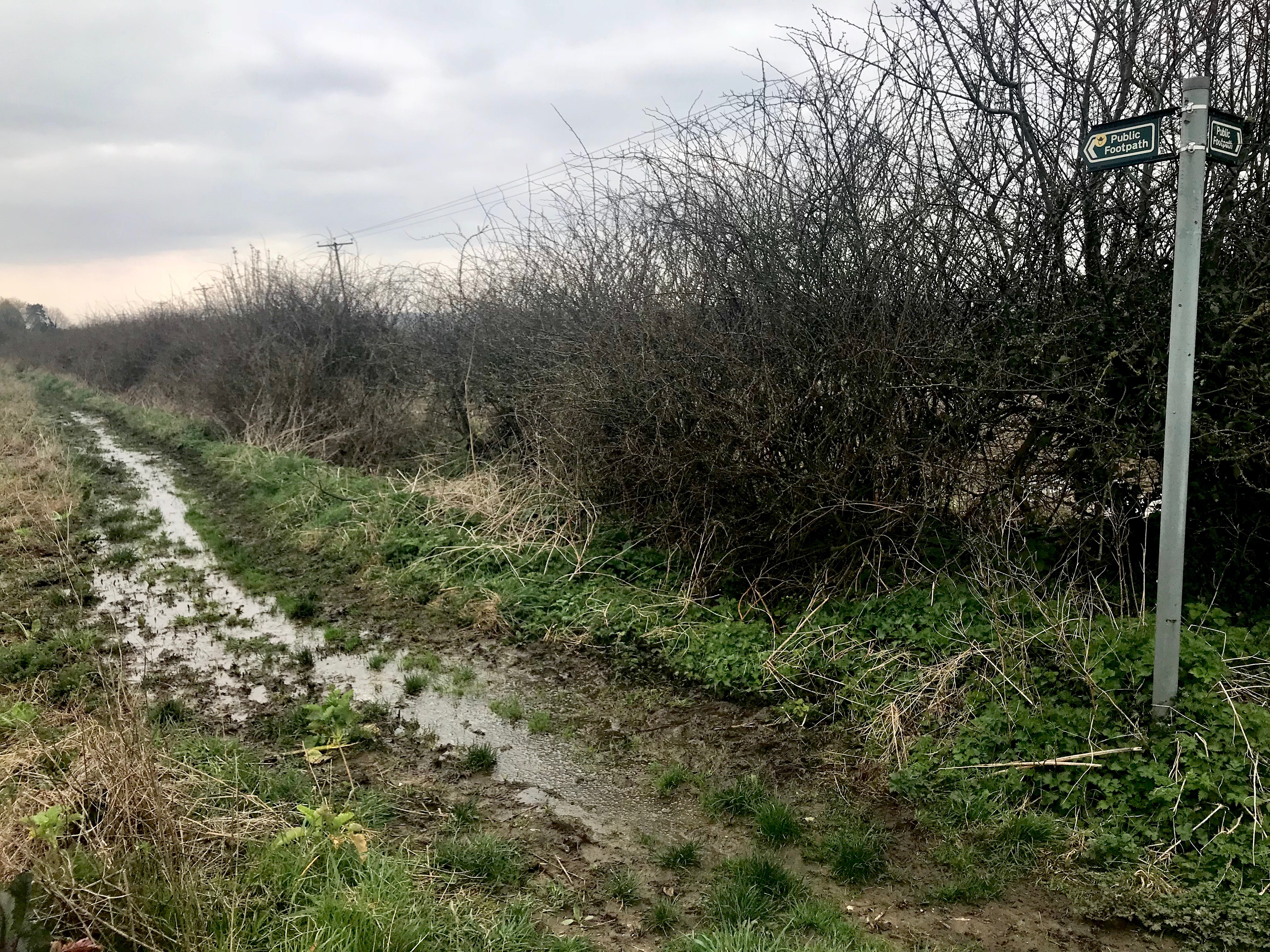We continue walking on bridleways and public rights of way through fields. Some parts are still wet and some quite muddy at this time of the year.